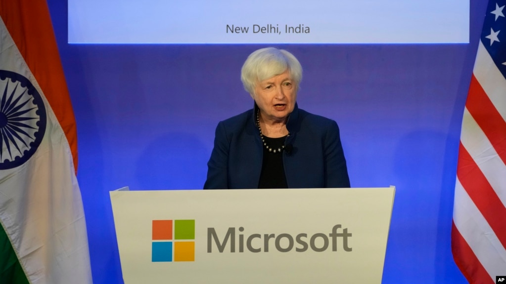 “For too long countries around the world have been overly dependent on risky countries or a single source for critical inputs," Yellen said Friday at a Microsoft facility in New Delhi on her first visit to India as Treasury secretary.